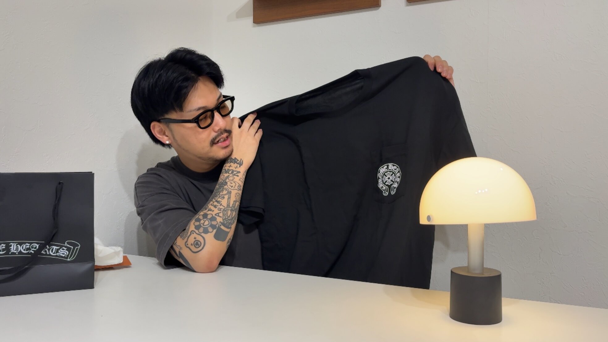この日、視聴者さんから新宿Chrome Heartsにこの青ネックTが入荷していた情報を教えてもらった。